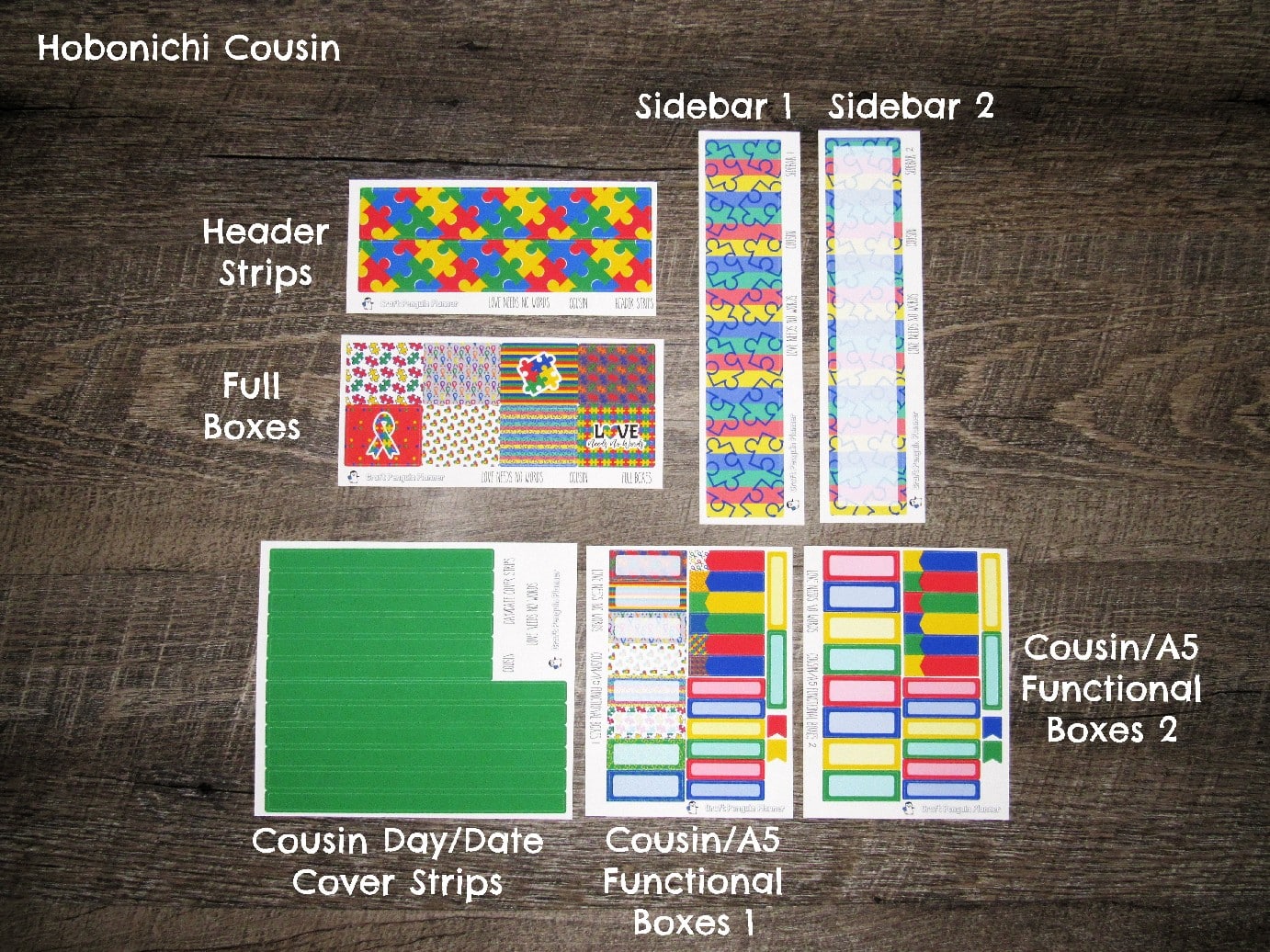 Hobonichi Cousin- Header Strips, Full Boxes, Cousin Day/Date Cover Strips, Cousin/A5 Functional Boxes 1 & 2, Choice of Sidebar (1 or 2)