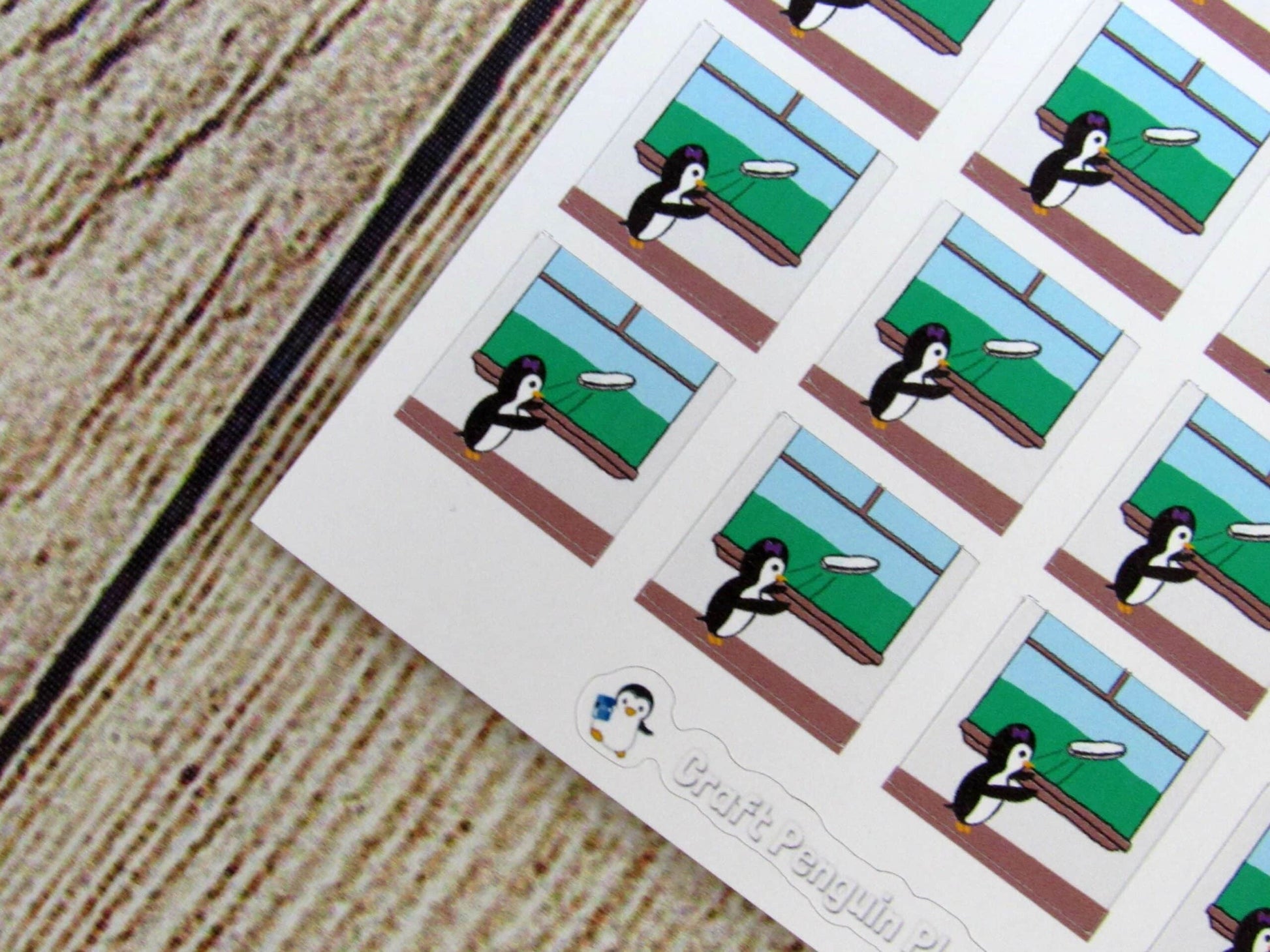 Snowflake is a hand drawn penguin. Each of the Waddles & Snowflake characters are drawn by me and are unique to my shop. These stickers are designed to fit any planner size.